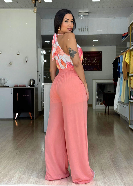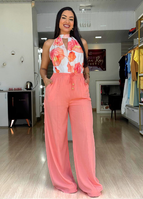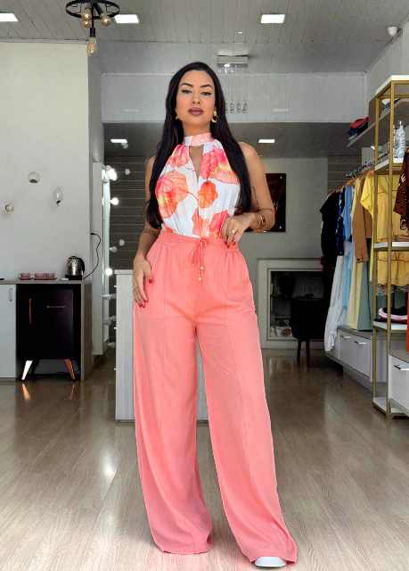 A modelagem pantalona proporciona um caimento fluido e elegante, garantindo movimento e sofisticação em cada passo.