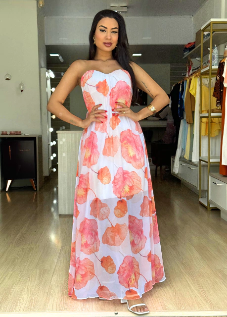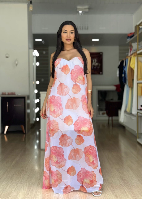 Perfeito para ocasiões especiais, este vestido combina beleza, estilo e é a cara do verão.
