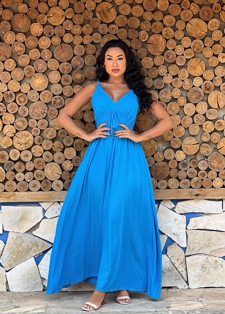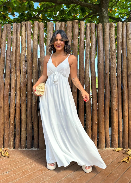 Este vestido é confeccionado com o tecido viscolinho de alta qualidade, proporcionando um toque suave e fluidez que abraça o corpo de forma confortável e elegante.
