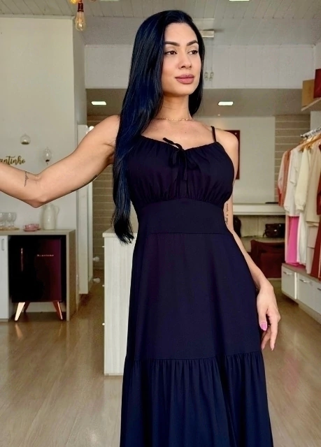 Encante-se com a delicadeza e o charme do Vestido Mídi Kaline! Com caimento leve e modelagem que valoriza o corpo, ele é perfeito para te acompanhar em momentos especiais ou no dia a dia com um toque de elegância. ✨